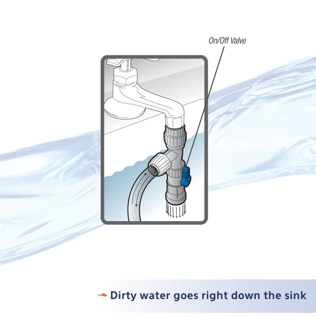 Turn on faucet. Open gravel tube valve to begin vacuuming.