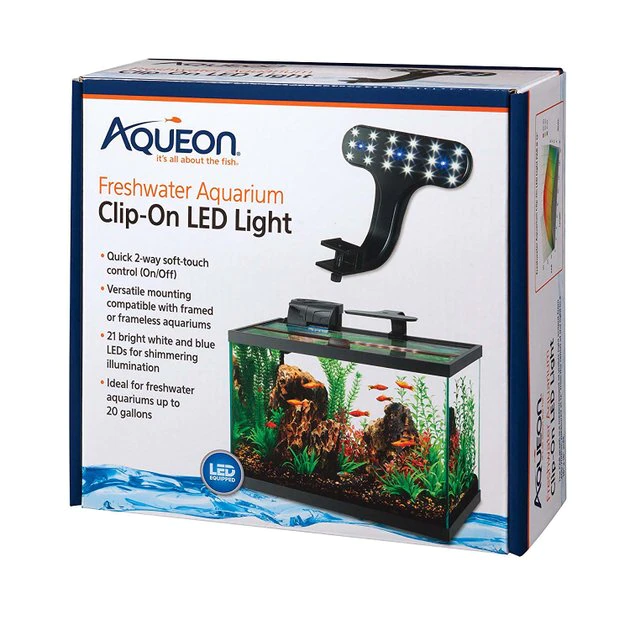 Show off your tank with the Aqueon Freshwater Aquarium Clip-On LED Light. It easily mounts on framed or frameless aquariums with a versatile mounting screw to brighten up your aquatic environment. This light features a two-way soft-touch control with 21 bright LEDs. Ideal for freshwater aquariums up to 20 gallons, the Clip-On LED Light from Aqueon provides optimal lighting for a bright and thriving aquarium.
