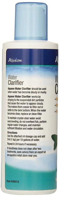 If your tank water has become cloudy or murky, it’s time to add Aqueon Freshwater Clarifier. This water treatment attaches to suspended dirt particles that cloud the water, which makes them easier to filter out or causes them to settle along the bottom of the tank. After the water clears, be sure to replace or clean the filter to maintain a safe and healthy environment for your fish.