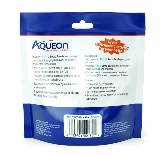 Keep your finned friend’s environment squeaky clean with Aqueon Pure Betta Beads Aquarium Water Care. These special beads contain beneficial bacteria that help maintain a healthy balance in unfiltered aquariums, while enzymes help breakdown organic sludge for crystal-clear water. These soft biodegradable balls also offer fun-filled entertainment for bettas and encourage their natural foraging behavior. For best results, replace the beads each month.
