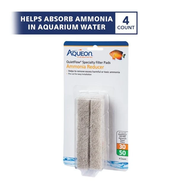Help keep your tank water clean and clear with Aqueon Replacement Specialty Filter Pads Ammonia Reducer 30/50. Designed to address common aquarium water issues, these replacement pads are pre-cut to fit in the Aqueon QuietFlow LED PRO Power Filter Bio-Media Grid (sold separately). This particular specialty filter helps reduce ammonia, which is essential to fostering a healthy environment for your fish. Ideal for the new aquarist and the seasoned hobbyist alike, these pads are an essential supply for maintaining a healthy aquatic habitat.