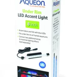 Enhance your aquarium setup with the Aqueon® Under Rim LED Aquarium Accent Light. This 8-inch, blue LED light highlights fluorescent décor, plants and fish, and comes with a clamp that attaches to the inner rim of your framed aquarium. This product also includes a transformer to power the fixture along with a 3-way splitter allowing you to connect two additional lamps (sold separately).