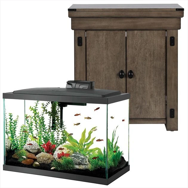 Aqueon LED Aquarium Starter Kit, 20-gal—The Aqueon LED Aquarium Starter Kit comes with everything you need to get your fish friends off to a fin-tastic start. Perfect for first-time fish parents, this convenient starter kit comes with a preset submersible heater, premium fish food, water conditioner, a fish net and a thermometer. Maintenance will be a breeze with the included QuietFlow LED PRO power filter—it has an LED indicator that flashes when it’s time to change the cartridge.