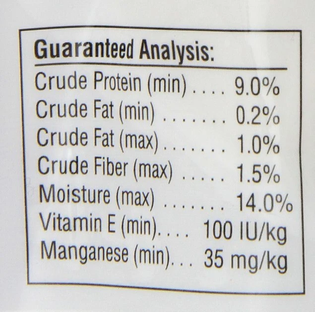 Corn, Chicken, Glycerin, Sorbitol, Beef, Fructose, Maltodextrin, Barley Malt Syrup, Gelatin, Salt, Natural & Artificial Flavors, Sweet Potatoes, Peas, Carrots, Xanthan Gum, Dicalcium Phosphate, Sodium Pyrophosphate, Potassium Sorbate (Preservative), Sodium Propionate (Preservative), Sodium Tripolyphosphate, D-Calcium Pantothenate, Vitamin E Supplement, Glycerol Monosterate, Pyridoxine Hydrochloride, Thiamine Hydrochloride, Ferrous Sulfate, Manganese Sulfate, Zinc Sulfate, Niacinamide, FD&C Red No. 40, FD&C Blue No. 1, FD&C Yellow No. 6, Vitamin B12 Supplement, Riboflavin Supplement.
