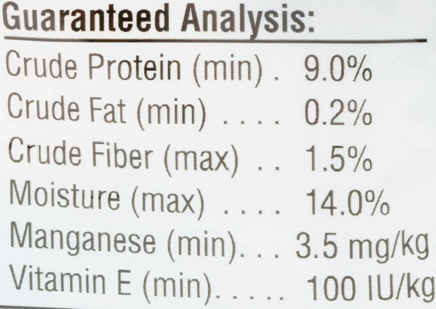 | Crude Protein | 9.0% min |