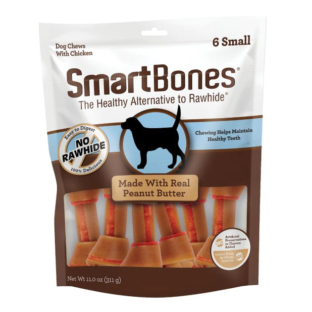 What could paw-sibly be yummier than rawhide? Smartbones Peanut Butter Small Chews Dog Treats, of course! They’re the paw-fect, rawhide-free treat for your pup who needs a daily reward or a snack. Crafted with real chicken and peanut butter, full of vitamins and minerals, you can feel good about what he’s eating. Also, these treats are easy to chew and digest, so you can expect the added bonus of healthy teeth and gums!