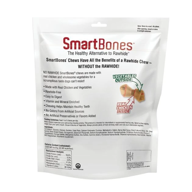 What could paw-sibly be yummier than rawhide? Smartbones Real Chicken Mini Chews Dog Treats, of course! They’re the paw-fect, rawhide-free treat for your pup who needs a daily reward or a snack. Crafted with real chicken wrapped in vegetables, full of vitamins and minerals¬¬—you can feel good about what he’s eating. Also, these treats are easy to chew and digest, so you can expect the added bonus of healthy teeth and gums!