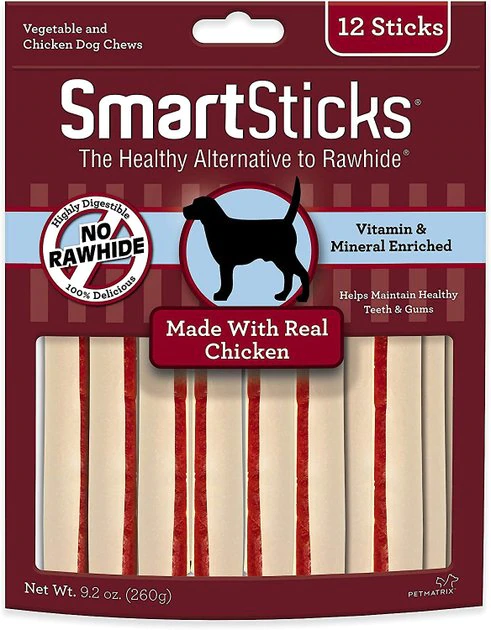 Sometimes rawhide is messy and risky, so eliminate that factor by giving your pup yummy Smartbones SmartSticks Chicken Dog Treats instead! They’re the paw-fect, rawhide-free treat for your pup who needs a daily reward or a snack. Crafted with real chicken¬¬–wrapped in vegetables full of vitamins and minerals–¬¬¬you can feel good about what he’s eating. Also, these treats are easy to chew and digest, so you can expect the added bonus of healthy teeth and gums!