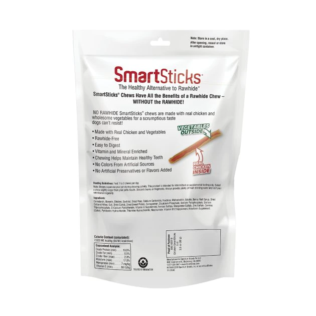 What could paw-sibly be yummier than rawhide? Smartbones SmartSticks Real Chicken Dog Treats, of course! They’re the paw-fect, rawhide-free treat for your pup who needs a daily reward or a snack. Crafted with real chicken and wholesome vegetables, full of vitamins and minerals—you can feel good about what he’s eating. Also, these treats are easy to chew and digest, so you can expect the added bonus of healthy teeth and gums!