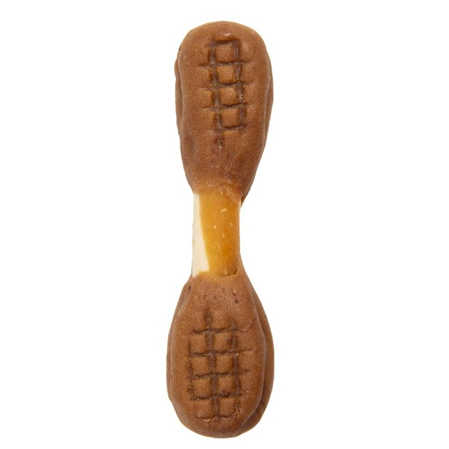 Give your dog triple the flavor and triple the fun with SmartBones Triple Flavor Dumbbells Peanut Butter Dog Treats. Made with tasty peanut butter, premium chicken and hearty beef, these rawhide-free chews are easy to digest, with a scrumptious taste dogs can’t resist. They are enriched with vitamins and minerals and brimming with savory flavor. The fun dumbbell shape provides long-lasting entertainment, and the chewy texture helps maintain healthy teeth while satisfying your dog’s natural urge to chew. With no colors from artificial sources and no artificial preservatives or flavors added, these wag-worthy treats are a healthy alternative to rawhide—and 100% delicious!